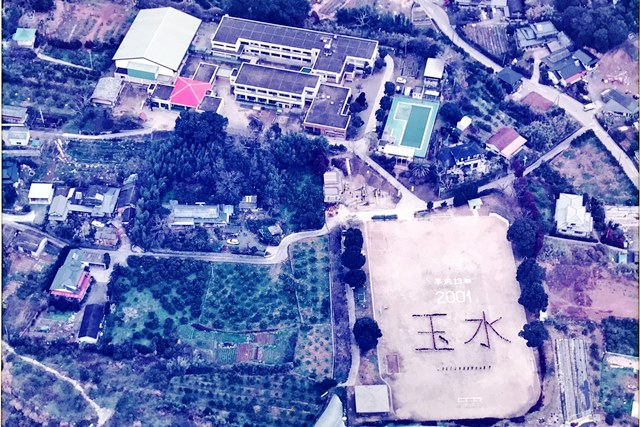 少し前になりますが、11月27日(火)に125周年の航空写真を撮影しました。文字を大きく描くために地域の方にも協力を頂きました。保護者、区長様、民生児童委員さん、老人会の方、グランドゴルフ愛好会?の方、近所に住民の皆様のご協力で無事撮影が終わりました。当日は小雨の降る中、心配しましたが、きれいな写真が撮れました。撮影は、ナスカアート(株)さんです。写真のホームページ等の掲載許可を頂きましたので、紹介します。