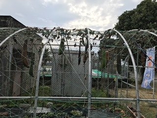 12月26日(水) 1枚目は、学校園の様子です。花工房さんから頂いた苗を植えています。2枚目の写真は、豊水小学校から分けていただいた花の苗です。3枚目の写真は、3年生が理科の授業で育ててきたヘチマの写真です。大きく育っています。