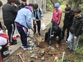 12月30日(日) 今日は、今年20歳になり、成人式を迎える卒業生が集まり、タイムカプセルが開封されました。コンクリートで固められており、なかなか掘るのが大変そうでした。タイムカプセルには、手紙や思い出のDVDが納められているそうです。この後、温泉でDVDをみながら同窓会があるそうです。
