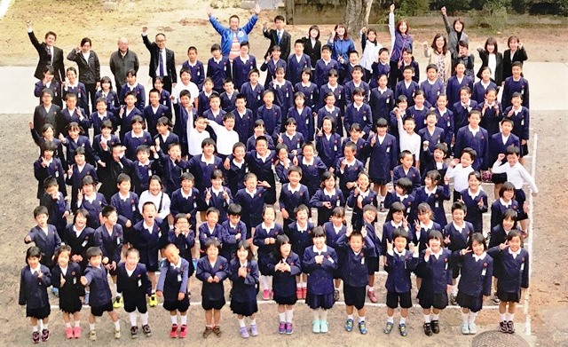 少し前になりますが、11月27日(火)に125周年の航空写真を撮影しました。文字を大きく描くために地域の方にも協力を頂きました。保護者、区長様、民生児童委員さん、老人会の方、グランドゴルフ愛好会?の方、近所に住民の皆様のご協力で無事撮影が終わりました。当日は小雨の降る中、心配しましたが、きれいな写真が撮れました。撮影は、ナスカアート(株)さんです。写真のホームページ等の掲載許可を頂きましたので、紹介します。