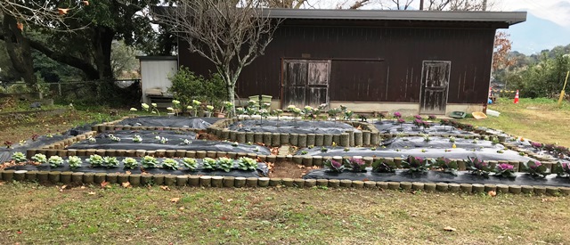 12月26日(水) 1枚目は、学校園の様子です。花工房さんから頂いた苗を植えています。2枚目の写真は、豊水小学校から分けていただいた花の苗です。3枚目の写真は、3年生が理科の授業で育ててきたヘチマの写真です。大きく育っています。