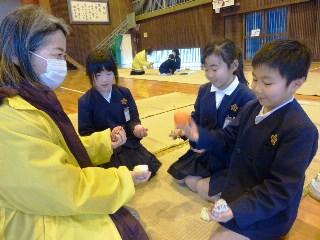 1月28日(月) 今日は、5・6年生が玉名学で茶道を体験しました。和菓子の食べ方お茶の入れ方の作法を学び実際に活動しました。短時間で茶道の心を身につけるのは難しいと思いますが、貴重な体験をすることができました。