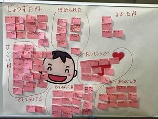 1月31日(木) 2校時ゲストティーチャーに三津家SCと橋本教育相談員をお招きして、すこやか教室の1,2年生の部を行いました。11月の人権旬間から「人権集会」「心のアンケート」その後の取組、そして、すこやか教室と続く、心の勉強の中心となるものです。内容は、「ふわふわことばちくちくことば」です。付箋に今まで言われたことのある「ふわふわ言葉」と「ちくちく言葉」を書いてホワイトボードに貼りました。そしてそれぞれにどんな力があるか考えました。子供達の付箋を見ると、軽い気持ちでいやだよと伝えているのでしょうが、結構残酷な言葉を使っています。子供達は、ふり返りで「ちくちく言葉は相手がいやな思いになるので、ふわふわ言葉を使っていきたい」と述べていました。絶対身につけなければいけないことだと思います。