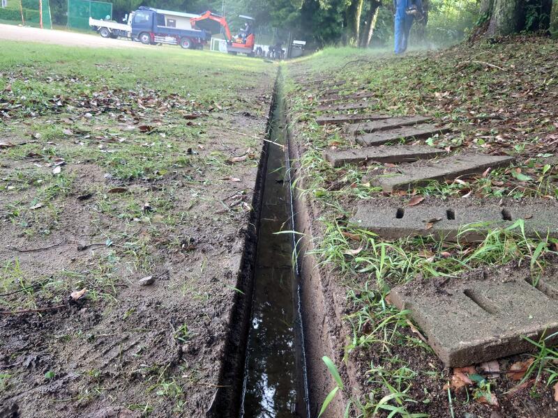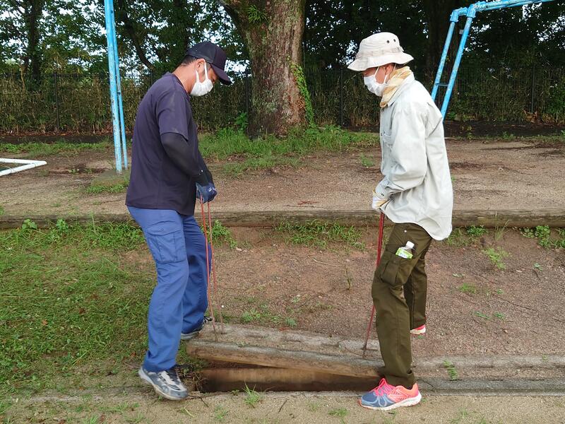 今回は草刈りと運動場周囲のU字溝にたまった土砂の撤去を行いました。皆さん汗だくになりながら作業をしてくださいました。