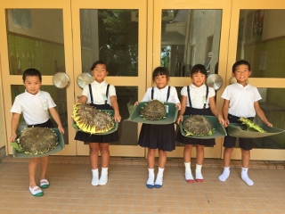 ひまわりのせいくらべの取組は終わりましたが、今度新しくひまわりプロジェクトチームを結成しました。メンバーは各班から選ばれた5人「福海黎明君、徳永心夢さん、井岡美月さん、高山日向さん、松岡陽汰君」です。