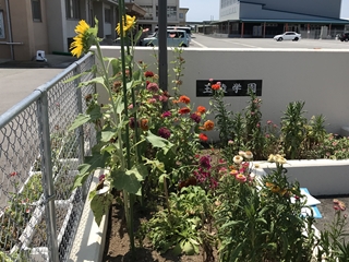 8月26日(日) 学校近くの方に育てていただいたひまわりです。植えていただく時期が遅かったので、今咲いています。協力ありがとうございます。