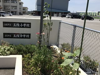 8月8日(水) 今日は、玉陵小学校で情報教育の研修会がありました。下の写真は、そのとき撮影したものです。玉陵小学校の校門には、ひまわりプロジェクトのひまわりが4本あります。2本はきれいに咲いていました。残りの2本はこれからです。なぜ玉陵小学校にあるかというと、玉陵小学校の岡村校長先生が、竹崎出身ということもあり、玉水小に来られた際にプレゼントをしたものです。しっかり育てていただいています。ありがとうございます。