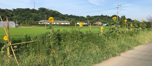 8月8日(水) ひまわりプロジェクトは、玉水小校区から広がっています。下の写真は、小天小学校校区の丸尾地区で栽培されているひまわりです。区長さんが丁寧に栽培してくださいました。4カ所に分けて多くのひまわりを育てていただいています。本当にありがとうございました。