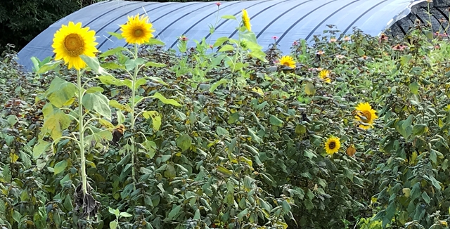 8月29日(水) 地域から写真を提供いただきました。斉藤地区で植えていただいたものと個人の家のひまわりです。ご協力ありがとうございました。写真は、少し前のものです。今は咲いていません。