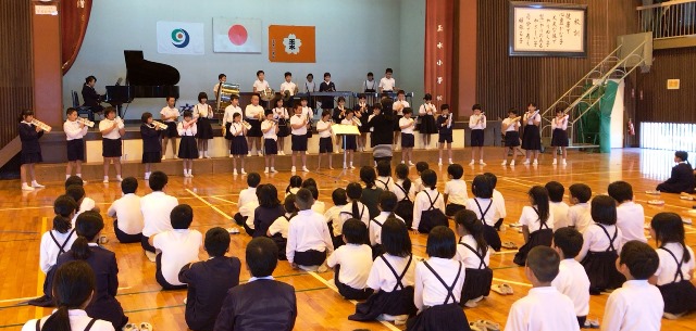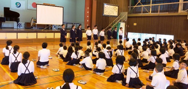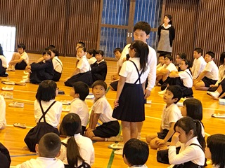 10月29日(月) 5校時に児童集会を実施しました。内容は、①今月の歌②委員会からのお知らせ③人権子ども集会参加児童の発表④音楽会の演奏(3年生・4年生)⑤心スキルタイムでした。人権子ども集会に参加した子供達からは、いじめをなくして笑顔一杯にしたい。という思いを発表してくれました。34年生は、音楽会の事前発表と言うことですばらしい歌声と演奏を披露してくれました。心スキルタイムでは、増田先生の指導のもと、異学年のペアでのふれあいの時間を過ごすことができました。