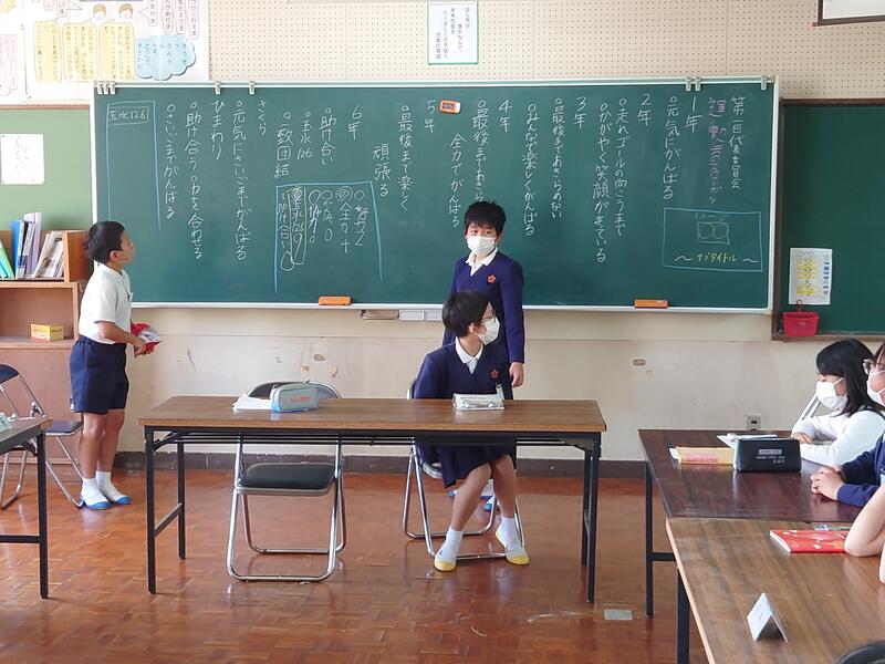 5月2日、本年度の第1回代表委員会を開催しました。参加したのは、各委員長(6年生)と4年生・5年生の代表者です。運営は、企画委員会の児童が行いました。