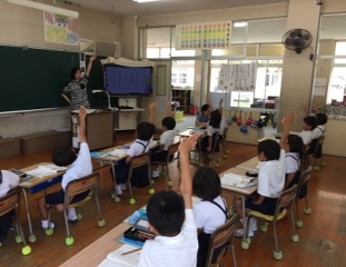 6月19日(月) 1時間目 ICT機器が活用されていました。ICT機器の一番の目的は、焦点化です。1年生の国語では、教科書の部分を大きく見せて(焦点化)工夫を考えさせたり、音読をさせられていました。3年生国語では、「七夕」の学習で天の川を映し出して学習が進められていました。