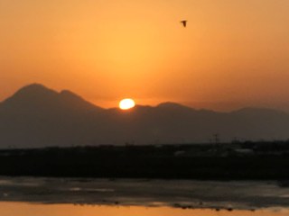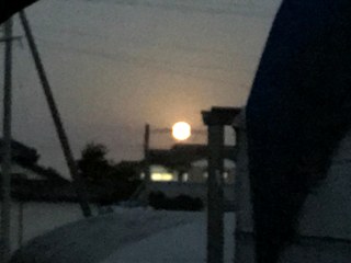 1月5日(金) 2018年のスーパームーンは、1月2日の火曜日でした。一番綺麗に見える時間帯は17時〜18時、東の地平線が見えるところです。ちなみに地球からの距離は、「356570km」で、最近で最も近づいた2016年のスーパームーンに次いで、2番目に近い距離だったそうです。写真は、1月3日の日の出前の月です。残念ながら朝6時前?の西の空です。画質があまりよくありません。もう一枚は、雲仙に太陽が沈んでいくところです。