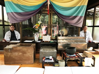 1月18日(木) 竹崎の観音祭りに行ってきました。本山(ほんざん)は、高野山「金剛峯寺」で真言宗だそうです。山鹿の「金剛乗寺」が,管理運営をされているお寺で、正式名称を「報恩院金剛寺」と言うそうです。毎月18日ににもお参りされる方がいらっしゃるそうですが、1月18日が初観音で一番大きな祭りと言われていました。大般若波羅蜜多経と言うそうですが、写真にあるように大きなじゃばらのようなものを用いてお祓いをされます。無病息災、健康祈願の御利益があるとのことでした。写真は、許可をいただいて掲載しています。