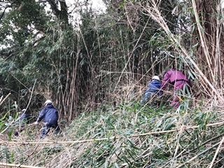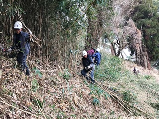 2月2日(金)今日と月曜日の2日間で、校舎北側斜面の整備が行われます。前回の作業でとても見晴らしがよくなり、周りからも校舎が見えるようにもなっていました。それで終わりと聞いていたのですが、玉名市のお計らいで、再度残りの一部を整備してもらえるようになりました。シルバー人材の方5名が作業を行われています。急な斜面での作業でとても大変です。本当にありがとうございます。写真は作業の様子です。