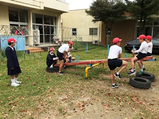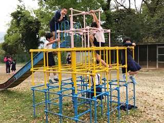 4月11日(水)今日の昼休みの様子です。大勢の子供達が、運動場やウッドステーションの周辺で遊んでいました。中でも、上級生が一年生と一緒に遊んでいる光景は、とてもほほえましく思えました。みんな楽しそうです。