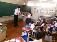 5時間目の学活では、通知表渡しや前期の振り返り発表などがありました。担任から一言ずつ声をかけられながら通知表を受け取ると、みんなから拍手が起きていました。特に1年生は、初めての通知表でどきどきしながらも、嬉しそうな表情で受け取っていました。