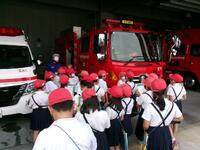 まず、有明防災館・玉名消防署では、映像や体験を通して、火事や台風、大雨などから身を守るための知識を学んだり、消火器の使い方を教えていただいたりしました。また、救急車や消防車を実際に見せてもらいながらそれぞれの役割についても学ぶことができました。