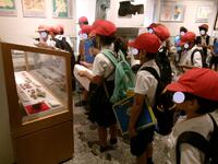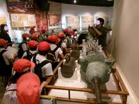 つぎにこころピアでは、玉名の歴史や昔の道具などの展示物を見せていただきながら学芸員の方々の説明を聞きました。竹崎や尾田の貝塚から出た5000年前の土器を見て、自分たちが住んでいる場所にそんな所があることにびっくりしていました。