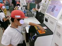 最後は、ゆめタウンでお店の工夫について学びました。日頃入ることのできないお店のバックヤードを見学させてもらったり、実際に買い物をしたりしながら、店の商品の並べ方や掲示物の工夫などにも気づくことができていたようです。