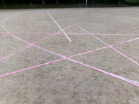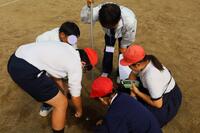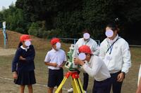 その後、運動場に出て、グループごとに測量機器の使い方を教えていただきながら★を描き、最後に各グループが作図した★をつないで、北斗七星が完成しました。