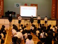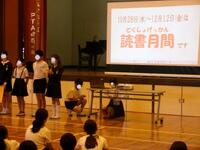 10月の児童集会があり、環境委員会と図書委員会からの発表がありました。