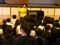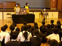 28日(火)の2校時(1~3年)と3校時(4~6年)に、今年も「オレンジてんてん」の会の皆様に、お話会を開催していただきました。