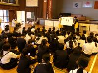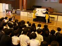 豊かな表現力に加え、大型絵本や小道具ばなし、ペープサート、パネルシアターなど、様々な趣向を凝らしていただいており、子ども達はお話の世界に引き込まれ、時には真剣に、時には笑い声をだしながら聞き入っていました。とくに「ぼちぼちいこか」の熊本弁でのお話は、低学年からも高学年からもたくさんの笑顔と笑い声が出ていました。