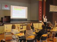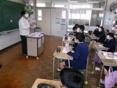現在6年生は、11月17日(日)と18日(月)の修学旅行に向けて、事前の平和学習を重ねています。その一環として、部田見中老人会の德永会長様にご来校いただき、戦争体験や戦争時代のお話をしていただきました。