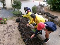 子供達とペアを組んでいいただいて、優しく植え方を教えていただきながら、一緒に作業をしていただきました。おかげさまで25ケースの苗を準備することができました。