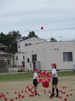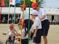 1・2年生が、大野保育園と岱明幼稚園の年長さんを招いて、おもちゃ祭りを開きました。これまで、1年生がどんぐり等の木の実を使ったおもちゃを、2年生がゴムやペットボトル等の身近なものを使ったおもちゃを作って、園児たちを楽しませようと準備してきました。