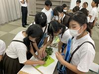 1月に行わえるどんどやの点火棒づくりに6年生が取り組みました。