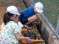 園児たちに説明をする姿は、とてもいいお兄さん、お姉さんでした。園児たちもとても楽しそうで、とてもいい交流ができました。