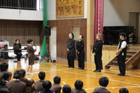 児童集会で、3・4年生が玉名市音楽会で発表する内容を披露しました。