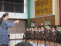「手のひらを太陽に」と「アンパンマンのマーチ」の2曲を、息のそろったきれいな歌声で歌い上げました。