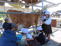 午後からは、牛の乳しぼりを体験しました。上手にしぼれることができ、子供たちは大喜びでした。