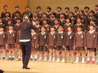 「手のひらを太陽に」と「アンパンマンのマーチ」を合唱しました。きれいなハーモニーが市民会館に響き渡りました。