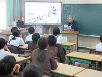 6年生が総合的な学習の時間にゲストティーチャーを招いて、大浜飛行場の様子等を学び、平和について考えました。