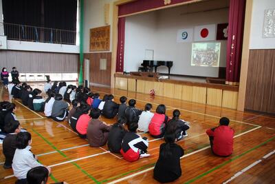 子供たちは、真剣に話を聞き、修学旅行での学びとともに平和について考えるいい機会となりました。