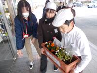 4年生が、総合的な学習の時間の福祉学習のまとめとして、「私たちが、身近な地域の人たちに笑顔や幸せを配ろう」と話し合い、メッセージ付きの花を地域の施設などに届けました。
