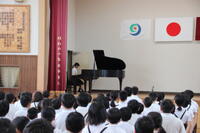 児童集会で、3・4年生が玉名市音楽会で発表する内容を披露しました。