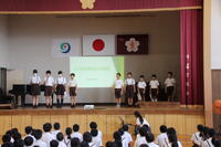 今日の集会は、そのまとめとしての役割もあり、それぞれの学年で学んだことを代表の児童が発表してくれました。「自分がされて嫌だったこと」「友だちに嫌なことをしてしまったこと」「一人一人が自分事として考えていくことが大切なこと」「自分の気持ちや思いをしっかり伝えること」「考えて行動すること」など、一人一人が真剣に学んだことが伝わってくる発表でした。