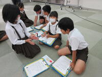 6年生が総合的な学習の時間にゲストティーチャーを招いて、大浜飛行場の様子等を学び、平和について考えました。