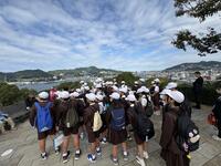 修学旅行に一泊二日で、長崎方面に出かけてきました。長洲町の多比良港からフェリーに乗り、カモメに出迎えながらの旅のスタートでした。