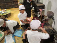 次に歴史博物館での学習を行いました。昔の道具に子供たちは興味津々で、実際に体験することもできました。