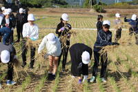 今年度も1月に行われるどんどやに使用されるわらを5・6年生、PTA役員、区長さん、大野支館運営員の皆さんで行いました。今年度は大本さんに田んぼやわらをご協力をいただきました。