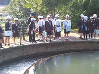 まず通潤橋では、円形分水を見学しました。農地へどのように水を通していたのかを実際に見て学びました。
