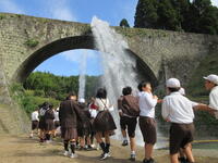 午後からは、通潤橋を渡ったり、放水を見学したりして、実際の通潤橋の大きさを実感しました。