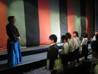 「手のひらを太陽に」と「アンパンマンのマーチ」を合唱しました。きれいなハーモニーが市民会館に響き渡りました。