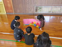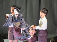 演劇後は、全学年で実際に人形体験をさせていただき、人形をもって顔の表情をつくったり、手足を動かしたりして、「楽しかった」と、とても笑顔で喜んでいました。